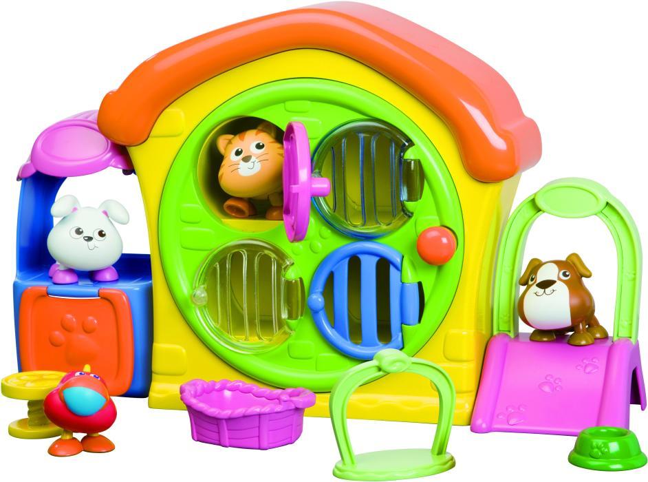 Маленький уютный домишко оборудован клетками с открывающимися дверцами, прикрывающими вход в отдельные комнатки зверушек, и горкой, стоящей во дворе. В скромном хозяйстве свободолюбивых и самостоятельных животных имеется все необходимое в повседневной жизни: миска для щенка, корзинка для котенка, стульчик для зайчика, жердочка для попугайчика.